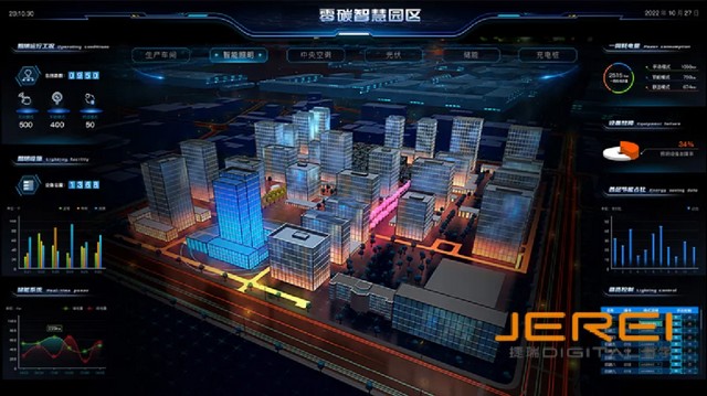 該系統(tǒng)還能夠對園區(qū)的碳排放指標進行實時顯示和監(jiān)控,通過數字孿生技術,對零碳解決方案案例進行綜合展示。