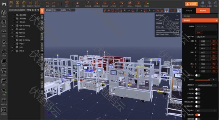 利用工業相機采圖、激光點云掃描等技術進行物理產線數據輸入(通過模型輕量化工具處理),在沙盤建立每臺設備、每個自動化部件的精細三維“數字映像”,產線實時運作形態(機械臂擺位、產品裝配流轉狀態)清晰可視。