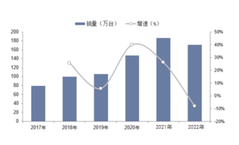 圖 2017-2022年中國(guó)主要工程機(jī)械產(chǎn)品銷量及增速