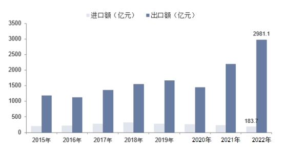 圖 2015-2022年中國(guó)工程機(jī)械進(jìn)出口金額