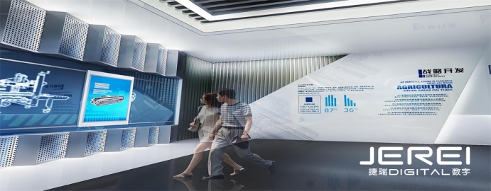 捷瑞數(shù)字數(shù)字中心展廳,作為現(xiàn)代智能展廳的杰出代表,以其獨特的魅力和創(chuàng)新的設計,為參觀者帶來了前所未有的展覽體驗。這個展廳不僅是一個展示平臺,更是一個融合了先進技術與豐富內容的互動體驗空間。