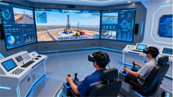 作為整個培訓體系的核心樞紐,油氣開采虛擬仿真實訓中心依托 VR/AR、數(shù)字孿生等技術(shù),將油氣開采全流程進行數(shù)字化復(fù)刻。學員無需踏入真實油田,即可通過沉浸式設(shè)備 “走進” 千米井下,觀察鉆頭切削巖層的動態(tài)過程;在虛擬鉆井平臺上,可反復(fù)演練井控操作、設(shè)備調(diào)試,即使出現(xiàn)操作失誤,也能在零安全風險的環(huán)境下分析問題、修正流程。這種 “虛實映射” 的實訓模式,不僅打破了場地與時間的限制,更通過實時數(shù)據(jù)反饋與操作溯源,讓每一次訓練都有精準的效果評估,徹底改變了傳統(tǒng)培訓 “靠經(jīng)驗、憑感覺” 的模糊教學狀態(tài)。