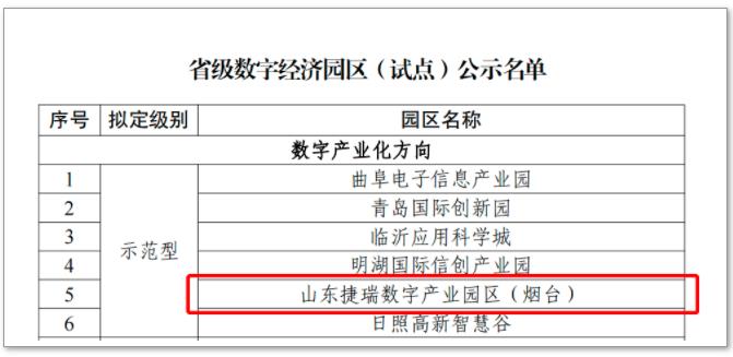 近日,山東省工業(yè)和信息化廳公布了省級數(shù)字經(jīng)濟園區(qū)(試點)名單,山東捷瑞數(shù)字產(chǎn)業(yè)園區(qū)榮耀上榜,成為煙臺市唯一上榜的示范型省級數(shù)字經(jīng)濟園區(qū)(試點)。