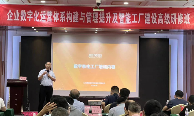 2022年7月21日,由工業和信息化部人才交流中心組織的“企業數字化運營體系構建與管理提升及智能工廠建設高級研修班”第一期培訓在青島順利舉辦。捷瑞數字首席技術官(CTO)、公司副總裁安士才受邀出席,并進行了“數字孿生工廠”的培訓。