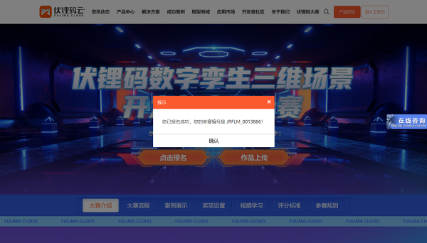 進(jìn)入伏鋰碼大賽網(wǎng)站,選擇【點(diǎn)擊報(bào)名】進(jìn)行大賽報(bào)名,獲取大賽參賽編號(hào),未注冊(cè)伏鋰碼平臺(tái)的小伙伴將會(huì)先進(jìn)行平臺(tái)注冊(cè)哦!