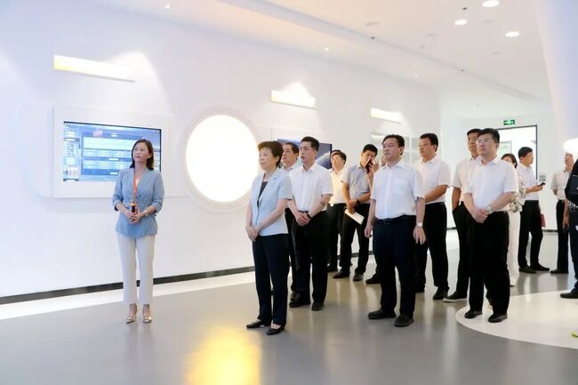 葛慧君主席一行參觀了捷瑞數字數字中心,聽取了牟文青總裁對捷瑞數字在工業互聯網和數字化領域二十多年的經營發展,以及伏鋰碼云平臺及數字孿生技術的創新研發與數字化轉型案例。