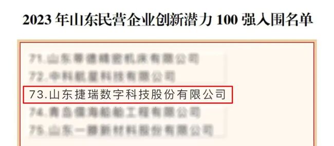 近日,山東省工商聯(lián)公布了2023年山東民營企業(yè)100強(qiáng)系列榜單,捷瑞數(shù)字憑借在數(shù)字孿生、工業(yè)互聯(lián)網(wǎng)領(lǐng)域的創(chuàng)新實(shí)踐,成功入圍“2023年山東民營企業(yè)創(chuàng)新潛力100強(qiáng)”榜單。