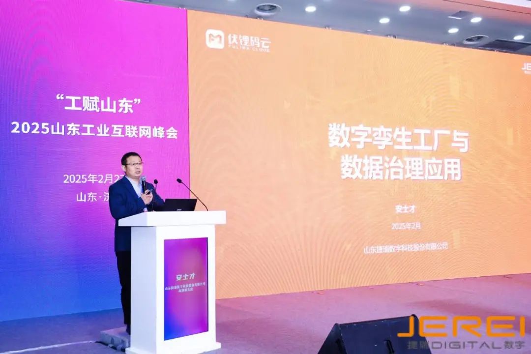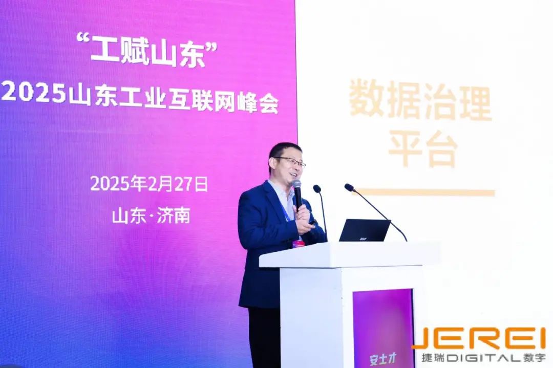 2025年2月27日-3月2日,“工賦山東”2025山東工業互聯網峰會暨工業互聯網創新成果展(以下簡稱:峰會)在濟南市山東國際會展中心M層8號會議室成功召開。本次峰會聚焦企業數字化轉型與人工智能應用,探尋工業互聯網在新時代背景下的創新發展路徑,為山東制造業的數字化轉型升級注入新的智慧與力量。捷瑞數字受邀參加,高級副總裁安士才先生發表數字孿生工廠與數據治理應用》主題演講,詳細分享了捷瑞數字在數字化轉型領域的優秀解決方案及成果,為在場企業提供經驗與借鑒。