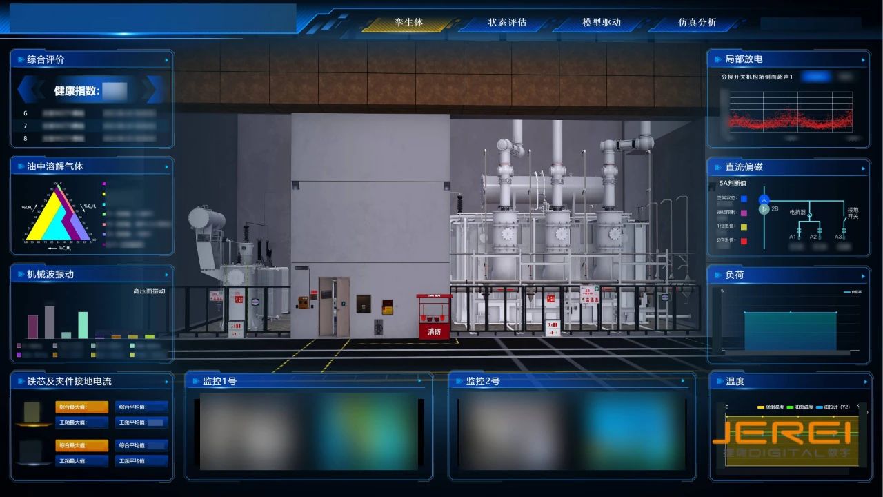 變壓器是水電站電力系統中關鍵設備之一。目前,當變壓器出現疑似缺陷等故障問題時,一般采用人為開展碎片式數據收集分析的方式進行研究檢查,無法系統、及時、全面的進行設備健康評價、故障預測和智能診斷。捷瑞數字攜手國內某大型電站打造主變壓器數字孿生體,以數字孿生、虛擬仿真技術賦能變壓器的巡檢維護,提升變壓器運維管理水平,實現變壓器由“傳統人工運檢”向“智能數字驅動”的管控轉型。